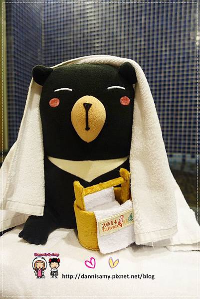 天氣漸漸變冷了,大家一致的選擇一定就是去泡溫泉,2014台灣好湯-溫泉美食嘉年華也熱烈地展開囉!今年還是一樣由食尚美食天后”莎莎”和當紅口白一哥“阿松”來代言,當然也少不了莎莎的泡湯密友~擔任交通部觀光局的超級任務組組長–喔熊 ~喔熊會在全台灣的泡湯好景點出現,手拿泡湯專用的小木桶和繡有台灣好湯logo毛巾,每隻喔熊上頭都會有專屬編號喔!