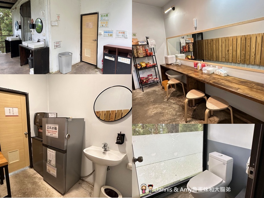 豐收地 / 山谷小鹿都有完整的淋浴、衛浴空間,提供棉花棒、吹風機,也有茶水間、公共冰箱可使用,浴沐用品提供的是茶籽堂品牌,入住山眠小車的話,則是要使用豐收地這區的淋浴空間喔!
