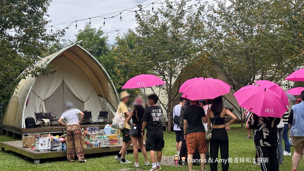 接待中心前有一大片空地可以停放愛車,入住這天雖然是平日星期一,但剛好遇到有公司包下了豐收地A區的頂級帆船帳,顯得格外地熱鬧。