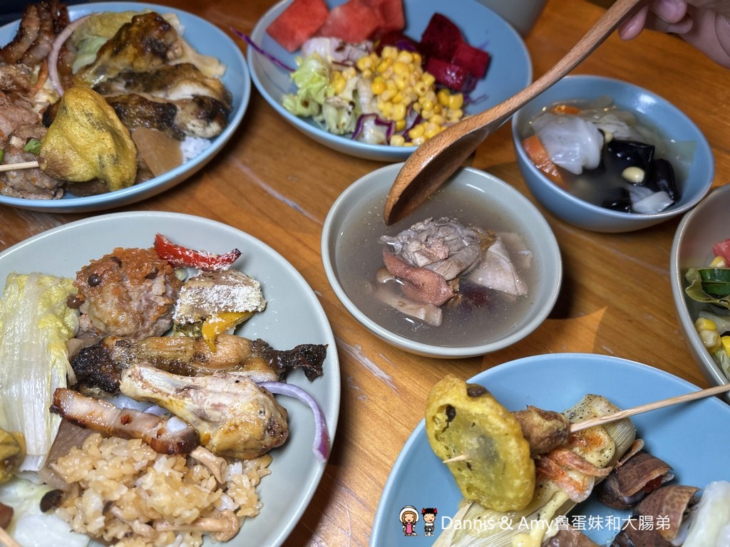 供應時間:18:00-19:30 平常很難得可以吃到原住民風味的料理,現場的餐點巧妙地應用了馬告、樹豆、刺蔥、鹹豬肉、柿子等不同特色食材,搭配不同的烹調方式,好吃有特色,從主菜、湯品、沙拉、蔬菜、炸物、甜點、水果選擇算是相當地豐富,。
